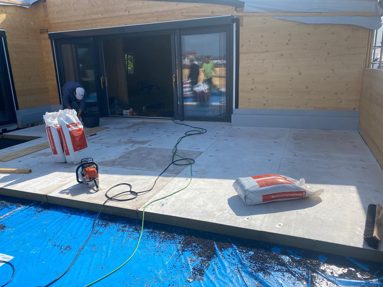 Die Terrassen sind somit für den finalen Terrassenbelag bereit; dieser wird jedoch erst später verlegt werden.
